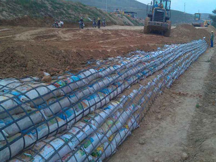 有時配合自粘感壓膠和表面瀝青浸漬處理,使格柵和瀝青路面緊密結合成一體。由于土石料在土工格柵網格內互鎖力增高,它們之間的摩擦系數顯著增大(可達08~10),土工格柵埋入土中的抗拔力,由于格柵與土體間的摩擦咬合力較強而顯著增大,因此它是一種很好的加筋材料。同時土工格柵是一種質量輕,具有一定柔性的塑料平面網材,易于現場裁剪和連接,也可重疊搭接,施工簡便,不需要特殊的施工機械和專業技術人員。